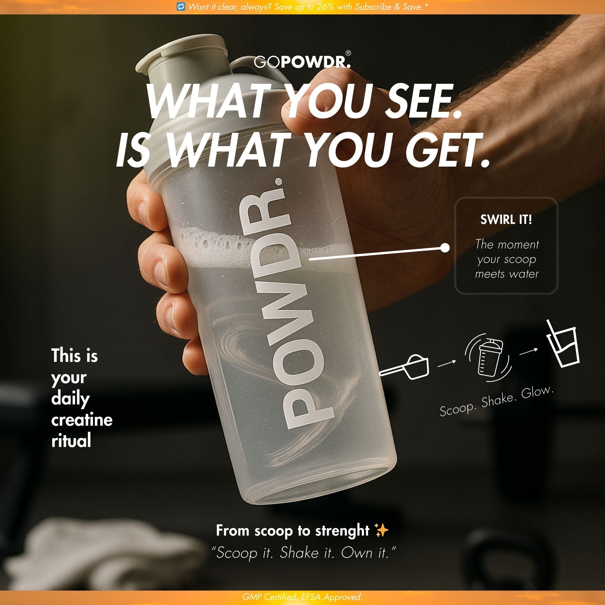 Authorized EU claim: Creatine increases physical performance in successive bursts of short, high-intensity exercise – the effect is obtained with a daily intake of 3 g of creatine.