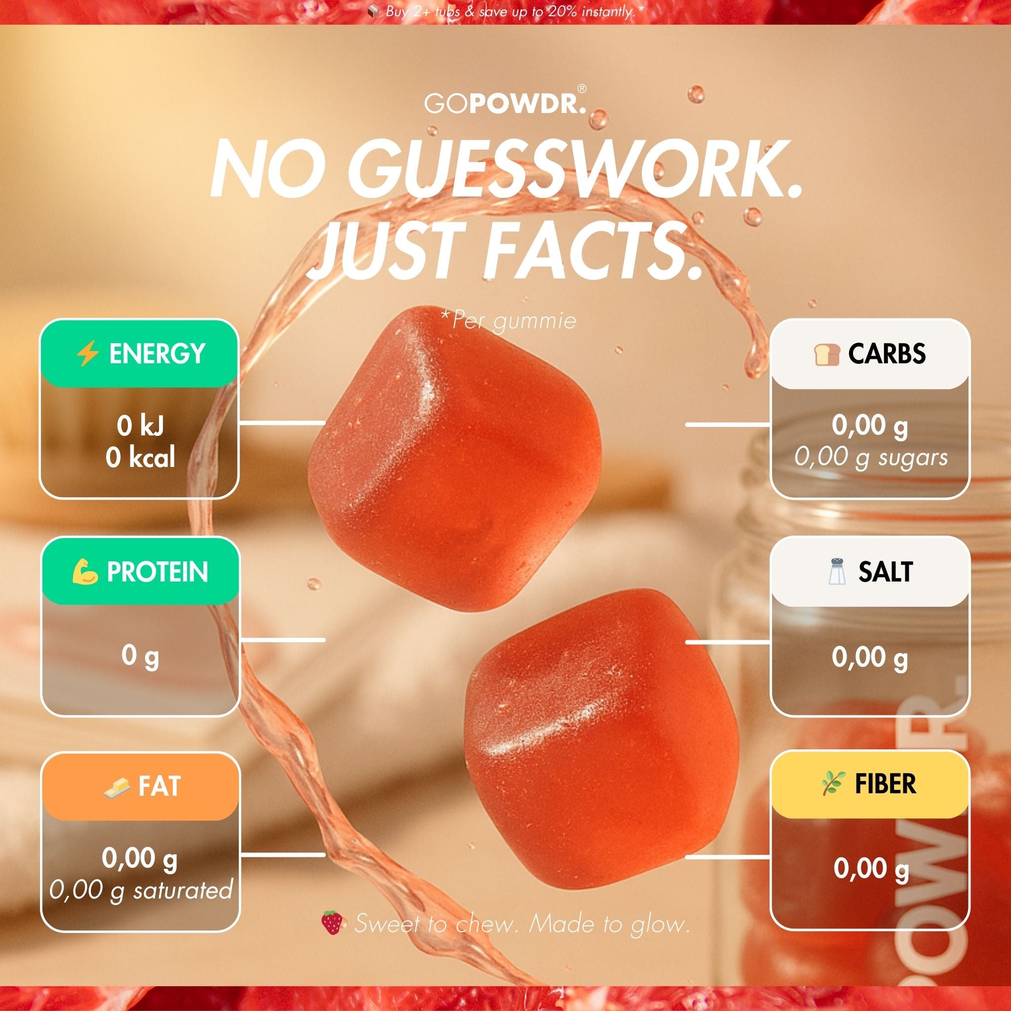 Beauty gummies are chewable dietary supplements with nutrients that support your beauty routine from within. Unlike capsules or powders, gummies are easy to take and fit seamlessly into a busy day. GOPOWDR. Beauty Gummies combine vitamins and minerals with selected plant extracts in a tasty, vegan base. Effortlessly add a daily "self-care" habit to your routine.